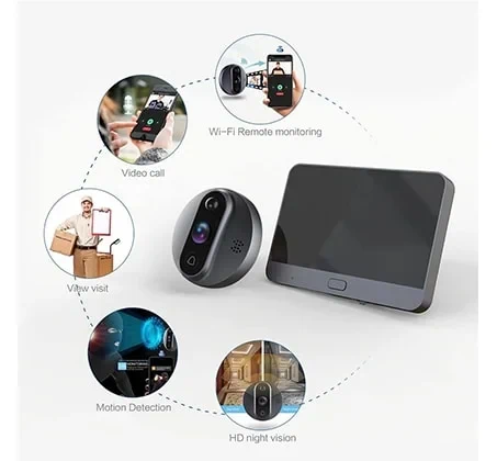 עינית WIFI דיגיטלית מקליטה לדלת – מסך בגודל 4.3" – ראית לילה וחיישן תנועה